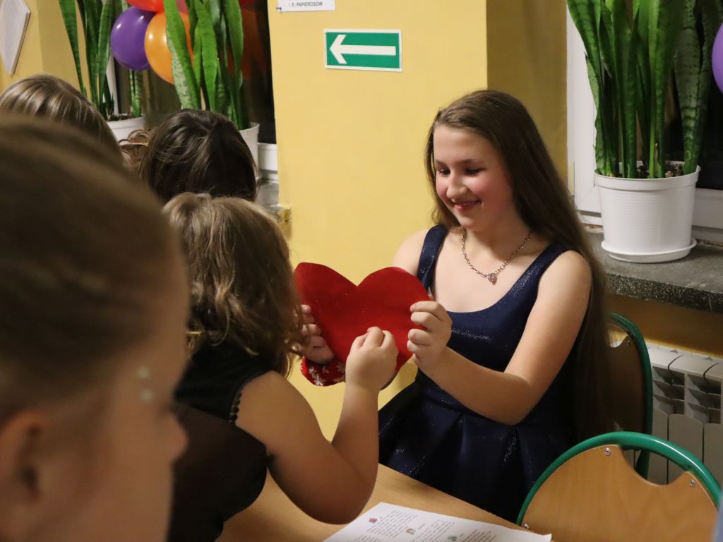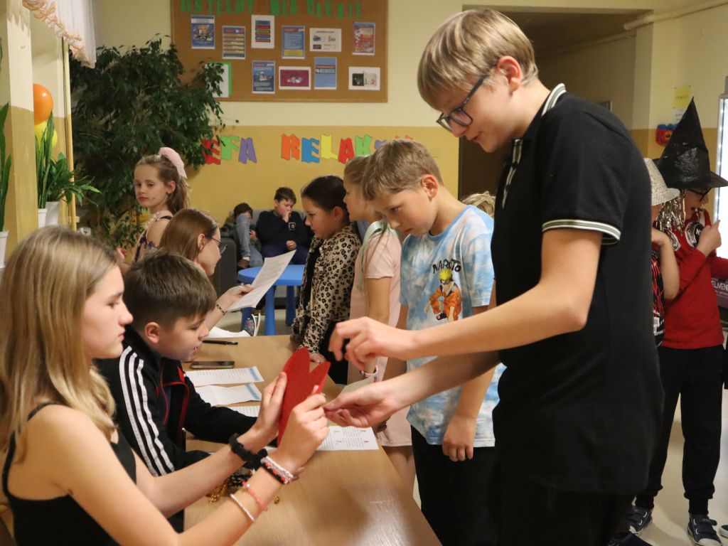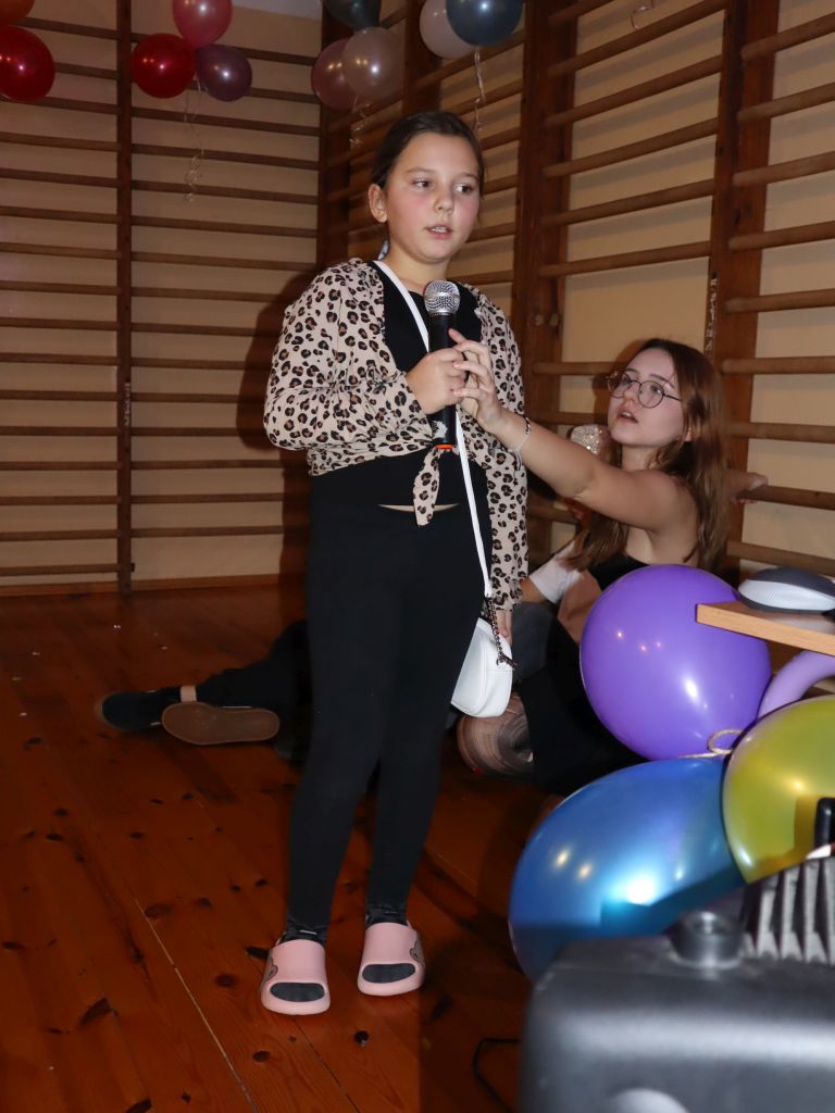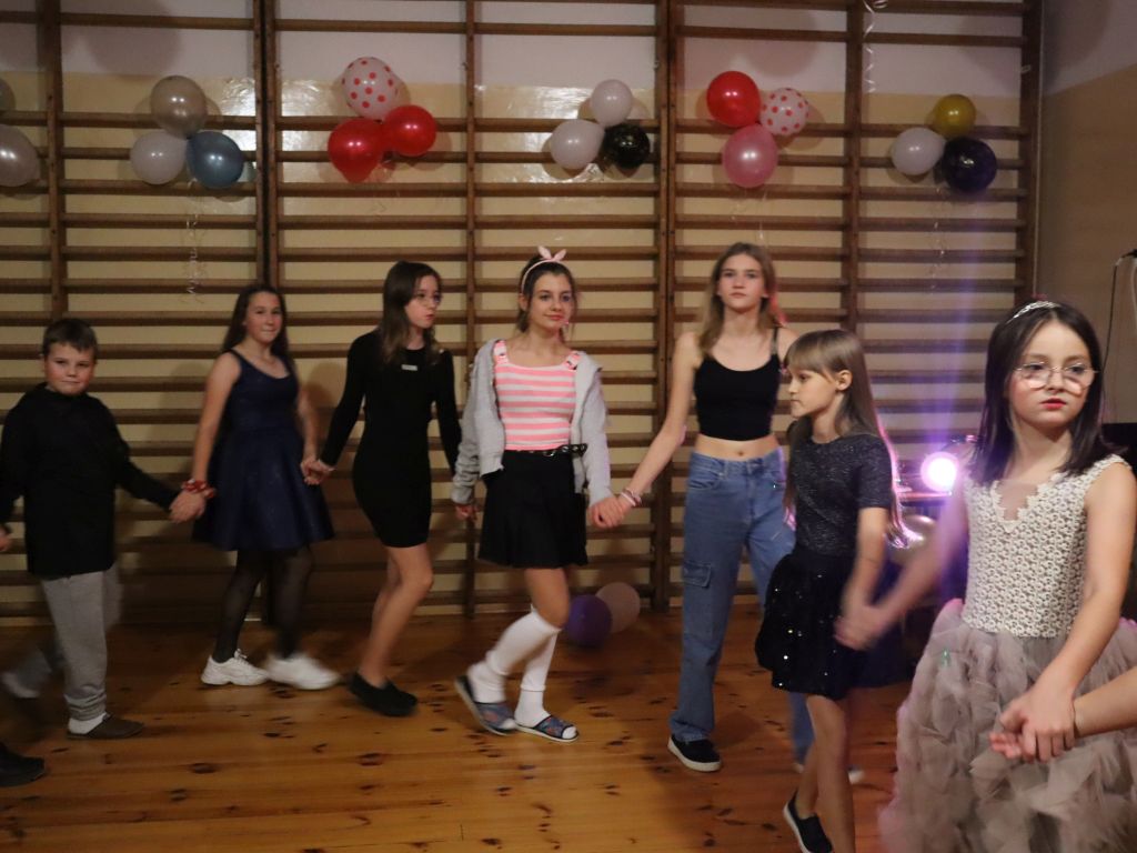 Wieczór czwartkowy przebiegały pod hasłem wróżb i zabaw andrzejkowych, a szkoła zamieniła się w miejsce czarów i magii. Każdy uczestnik andrzejkowej zabawy z niecierpliwością przekłuwał papierowe serce, aby odczytać imię swojej sympatii, losował magiczne bileciki z nazwami zawodów przyszłości, szukał swojej szczęśliwej liczby, poznawał znaczenie swojego ulubionego koloru. Katalog wróżb był obszerny i bogaty, a każdy pragnął wywróżyć sobie coś wyjątkowego. Młodszych kolegów i koleżanki do wspólnych wróżb i zabaw zachęcali uczniowie klasy VIII, którzy z zapałem i kreatywnością prowadzili bal andrzejkowy. Wróżby, światełka, balony, serpentyny oraz stroje uczestników zabawy dodawały magii i tajemniczości. Wszyscy uczestnicy balu świetnie się bawili. Był to fantastyczny wieczór wspólnej zabawy, wróżb i magii.