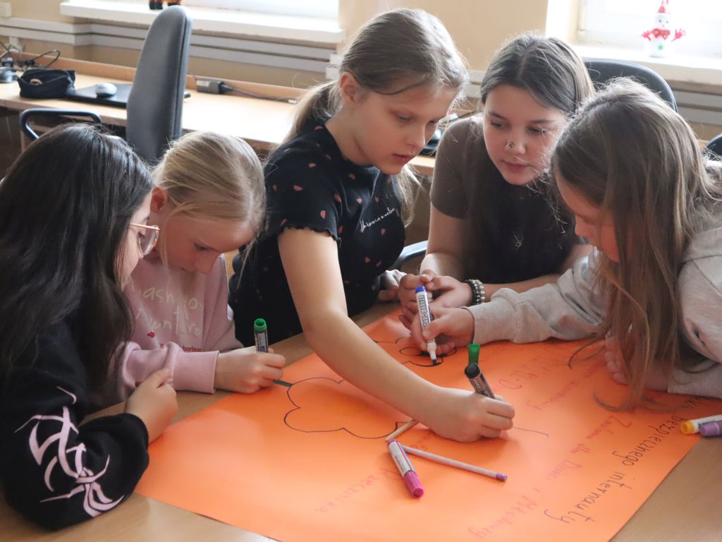 W klasach starszych uczniowie na początku obejrzeli krótkie filmiki. Jeden dotyczący zagrożeń czyhających na nich w sieci, drugi wygenerowany przez AI z historyjkami pokazującymi, jakie niebezpieczeństwa mogą napotkać uczniowie w Internecie. Po każdym z filmów nastąpiła analiza i rozmowa.